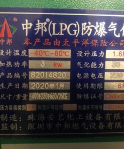 Tiết Kiệm Năng Lượng: Máy hóa hơi điện Zhongbang tiết kiệm đến 15% lượng gas sử dụng. Công suất hóa hơi từ 30-50kg mỗi giờ, phù hợp với bếp dân dụng, khách sạn và các ứng dụng gas thương mại.